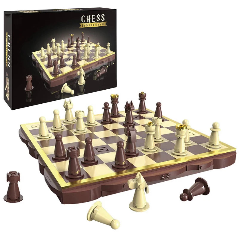 Strategie trifft Kreativität – mit diesem Klemmbaustein-Schachset (816 Teile) erschaffst du dein eigenes, voll funktionsfähiges Schachbrett! Das edle Design in Holzoptik mit hellen und dunklen Steinen verleiht dem Spiel einen hochwertigen Look, während der Aufbau selbst für entspannende Stunden sorgt.