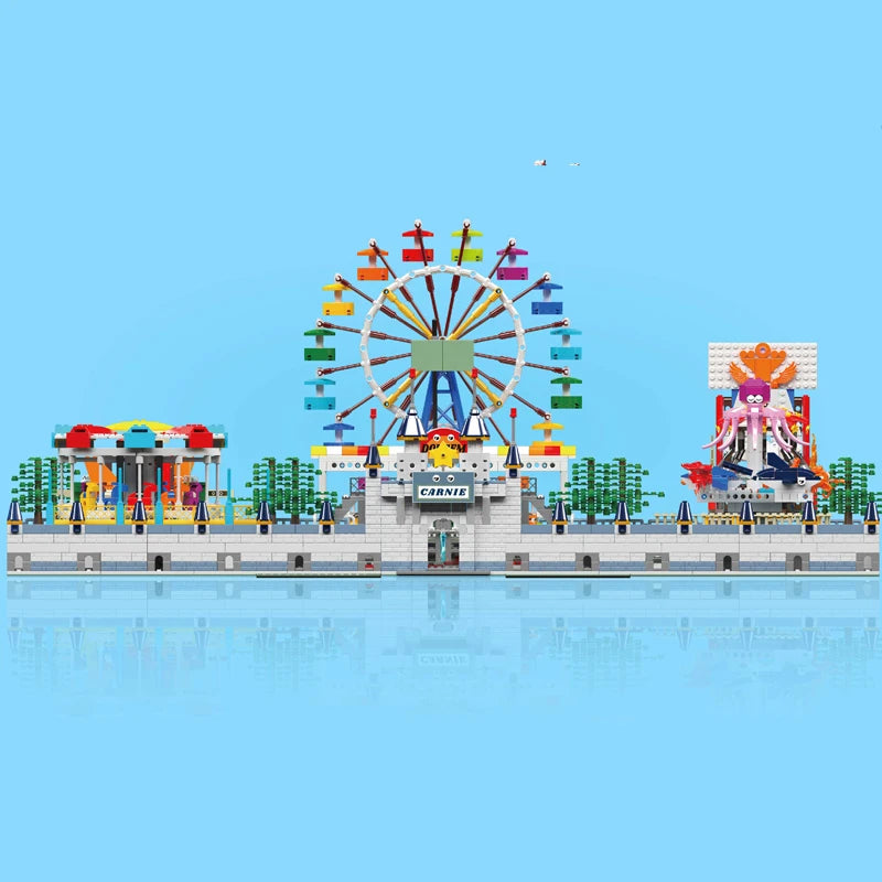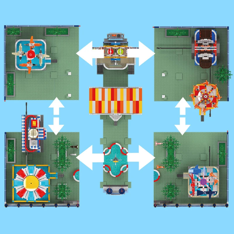 Erlebe puren Bauspaß mit dem detailreichen Mould King Freizeitpark aus beeindruckenden 5.220 Teilen. Dieses Set bringt den Nervenkitzel eines echten Freizeitparks direkt in dein Wohnzimmer. Mit buntem Riesenrad, aufregenden Fahrgeschäften, einem Piratenschiff, Karussell, Autoscooter-Halle und vielen weiteren Attraktionen entsteht ein lebendiger Park voller Highlights. Liebevoll gestaltete Details wie Bäume, Figuren und kleine Dekorationen sorgen für eine realistische Atmosphäre und machen den Aufbau zu einem echten Erlebnis. Dank der hochwertigen Bausteine, die mit gängigen Klemmbaustein-Marken kompatibel sind, überzeugt das Set durch Stabilität und passgenauen Sitz. Perfekt geeignet für Sammler, Klemmbaustein-Fans und alle, die ein außergewöhnliches Modell mit viel Abwechslung und riesigem Spiel- und Ausstellungswert suchen.